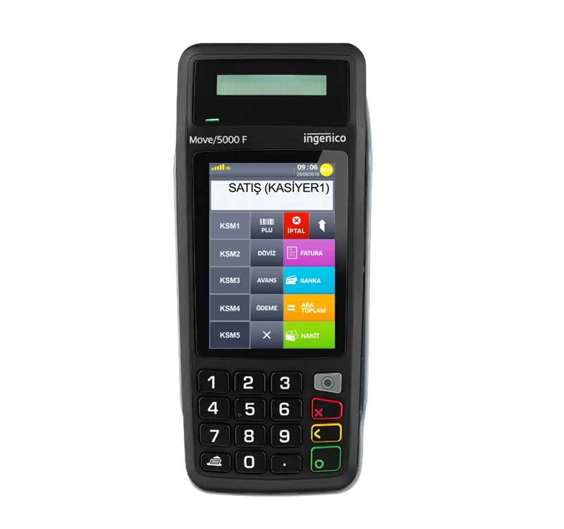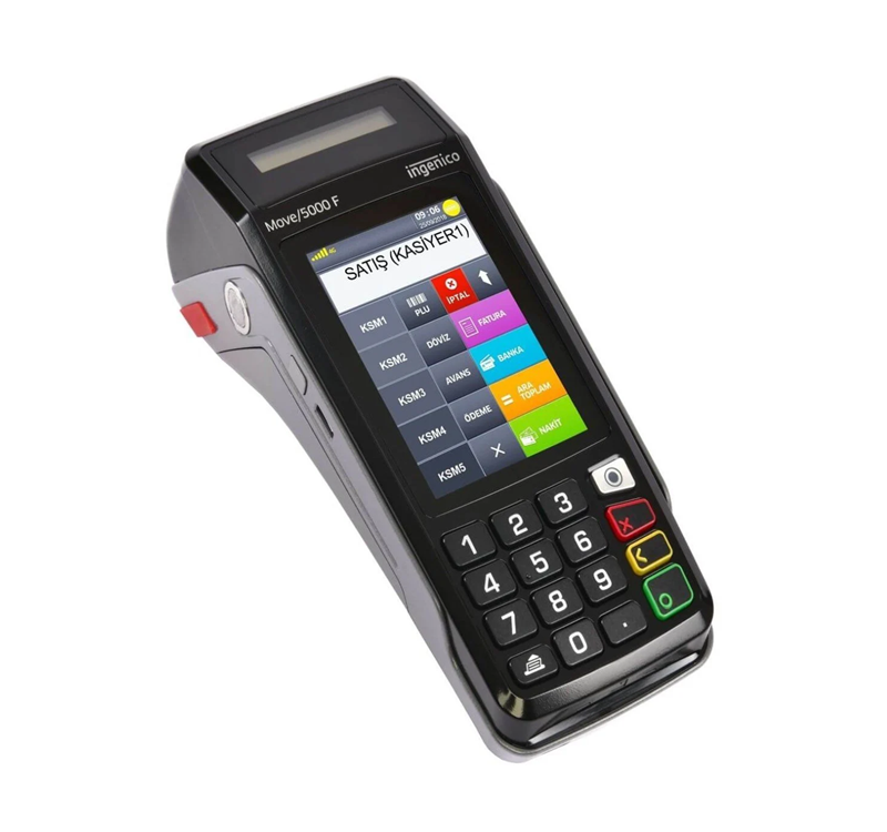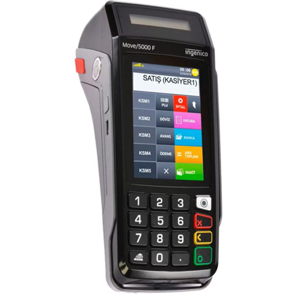 Ingenico Move/5000 F, hafif yapısı, yüksek dayanıklılığı ve hızlı işlem kapasitesi ile seyyar kullanımlar için geliştirilmiş profesyonel bir yazar kasa POS cihazıdır. Sadece 420 gram ağırlığı ve ergonomik tasarımı sayesinde kolayca taşınabilir; restoran, paket servis ve yoğun saha operasyonlarında maksimum performans sunar. Geniş dokunmatik renkli ekranı, ergonomik tuş takımı ve müşteri ekranı ile hem işletme sahipleri hem de müşteriler için kullanıcı dostu bir deneyim sağlar.
